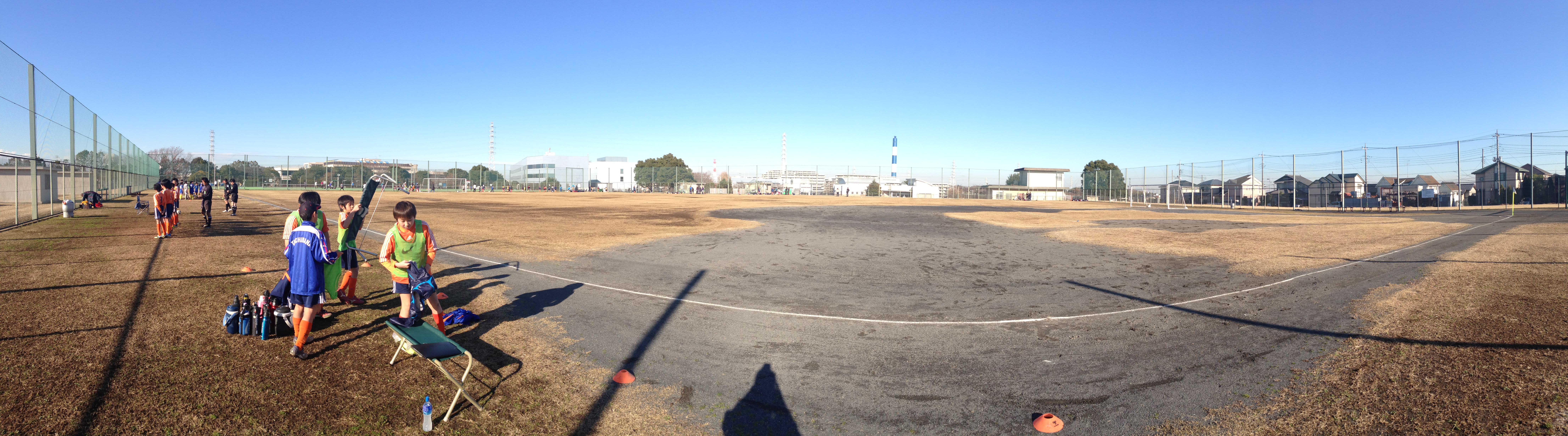 前半にペナルティエリア近くのいい位置でフリーキックを得てリキがキックしますが、昨夜の雨で少しぬかるんだグランドで足が滑ってしまい残念。