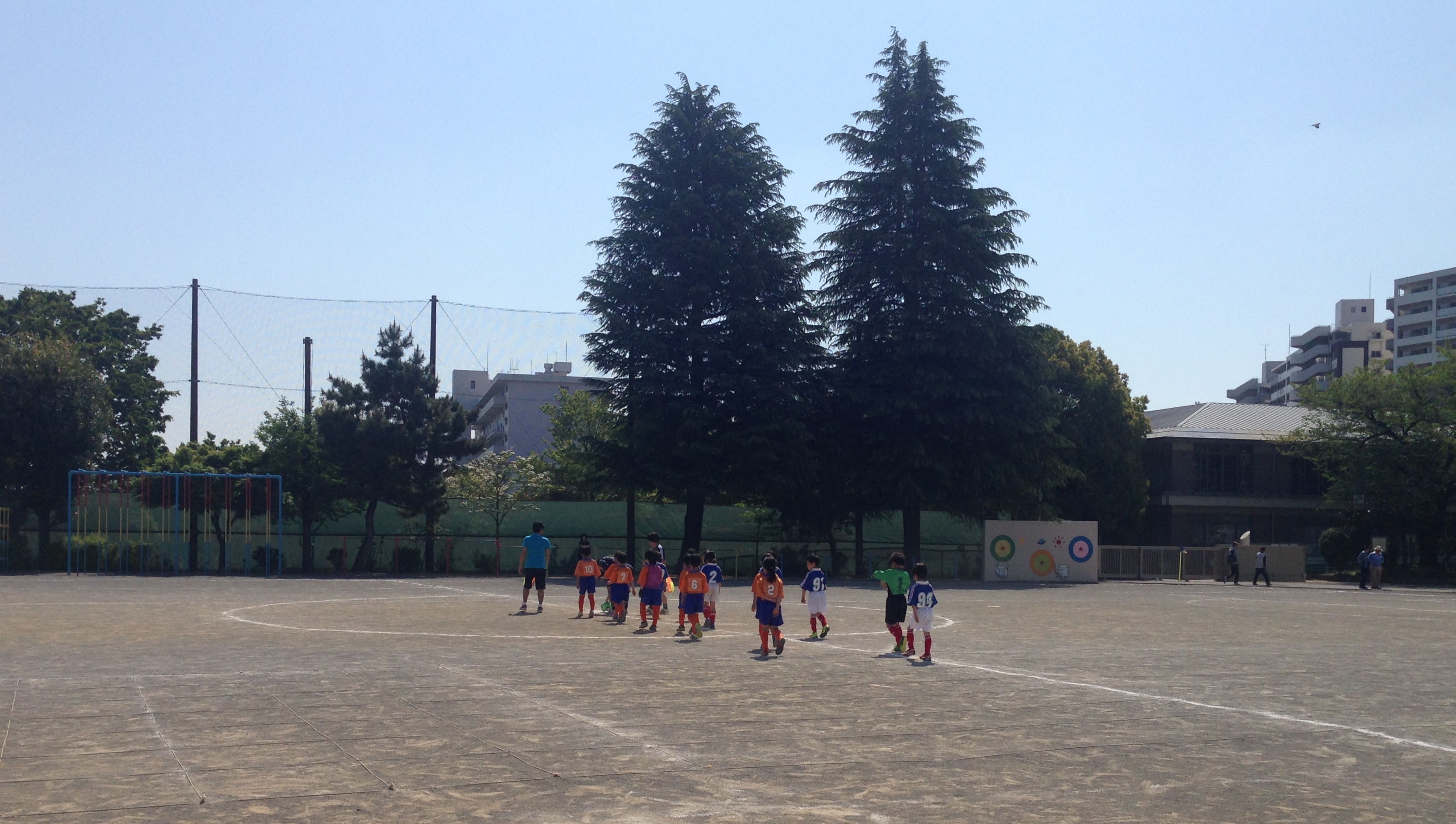 朝から暑いくらいの良い天気。10分ハーフで2試合、10分一本を2試合の予定で、疲れちゃうかな~と思いましたが、最後までグランドいっぱいに走る姿を見せてくれました。