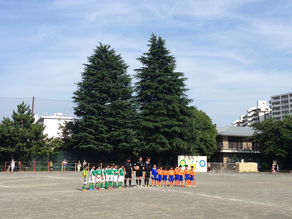 この暑さの中、運動量が落ちてしまいタフな試合になる予感はしましたが、久しぶりに4年生メンバーの試合を指揮させてもらい、春よりスキル、メンタル、体力も、そしてチームワーク(控えに回っていたコウヘイがどこのポジションでも頑張ると 言ってくれました)も断然に成長していることを感じるシーンが幾度も見られました。そして試合を決めてくれたのは、右サイドバックに入っていたコウヘイからのロングパスが綺麗に中央のツカサに渡り、強烈なミドルシュートがキーパーを弾いてスルスルとゴールラインを割り、待ちに待った先制点。前半にもダイレクトボレーがおしくもキーパーの真っ正面と何度となくチャンスがありながらもゴールに嫌われていましたが、大事なところで決めてくれました。その後も、サイドのタロウがキレキレで右サイドを破り、そこから大きく左サイドのスペースで待っていたリオに渡り、ビックチャンスでGKと一対一に!!相手DFが上手くを体を入れてきて、リオのシュートが枠をそれて行きました。残念!!交流試合では、落ち着いて決めていましたね。