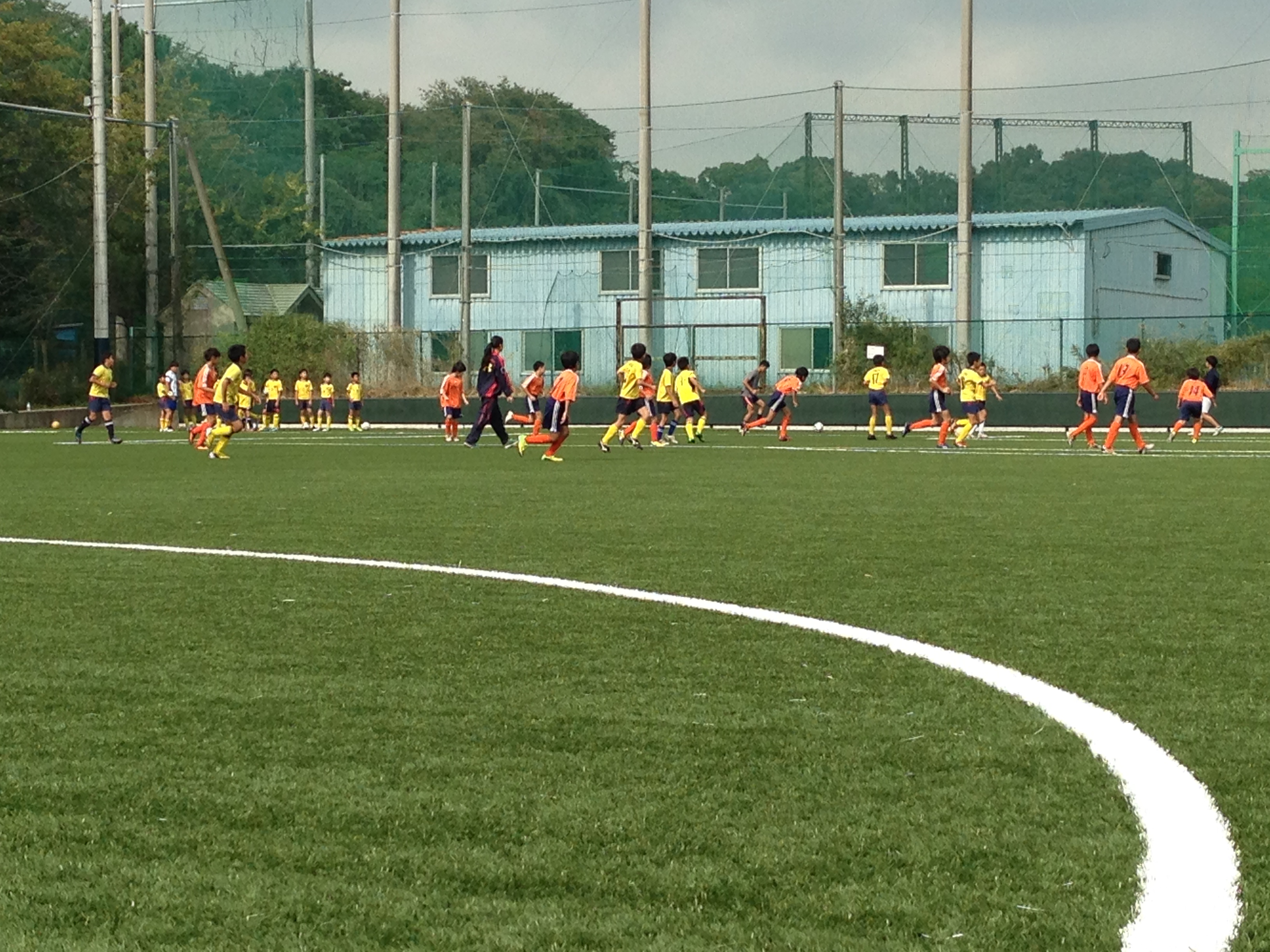 綺麗に張り替えられた人工芝の半面を使用した11人制の試合を20分4本行いました。