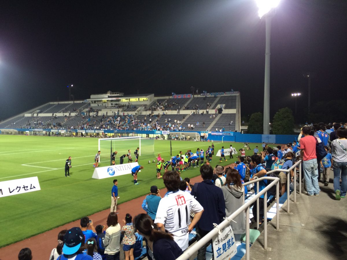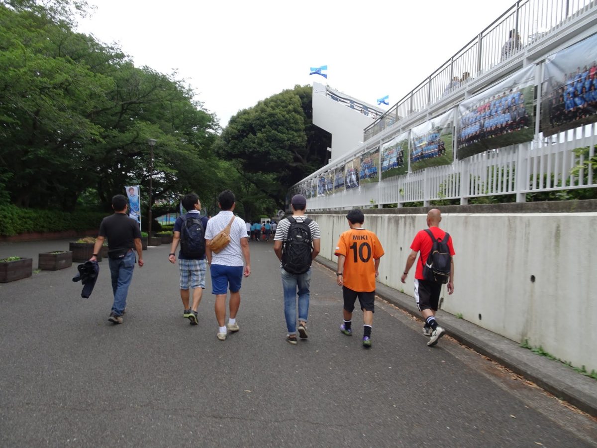 15時15分に日吉銀玉前集合し、4班に分かれてブルーライン三ツ沢上町駅まで移動。三ツ沢上町駅で合流し、三ツ沢競技場まで徒歩で移動。(歩き始めた頃に小雨が降り始めました)