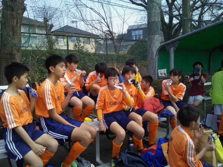 その後も、どっちかというと、ポゼッションは、たちばなが上も、個の力で攻めて来る相手に危ない場面も多いも、セキ、サトウ、ユウキチが何とかしのぐ。