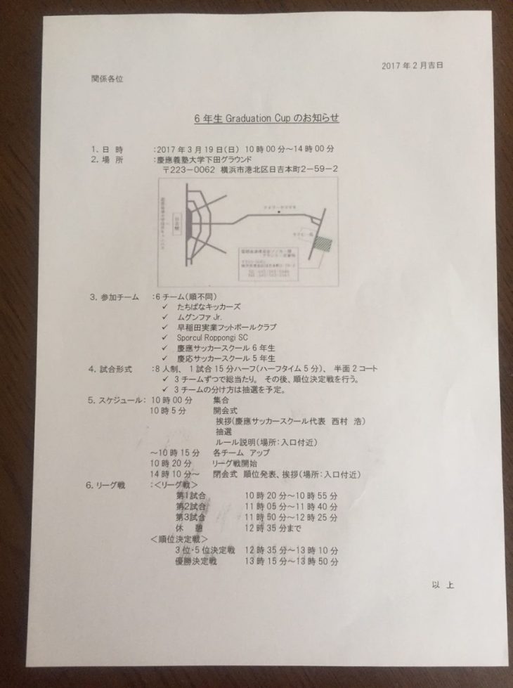 本日(2017/3/19)、6年最後のカップ戦、慶應サッカースクールさん主催の (第2回)“6年生 Graduation Cup”