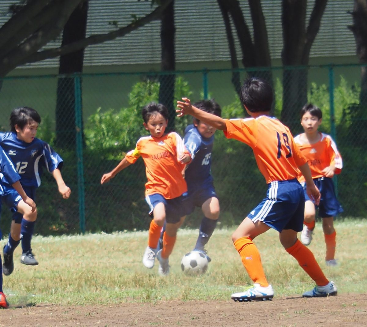 試合は中盤での押し合いへし合いで、当たりに強いつばさAのペースで試合が進むも、たちばなディフェンス陣のカバーが早くシュートは打たせず危なげない立ち上がり。そんな中、ソウが足を痛め早くもトウマに交代。