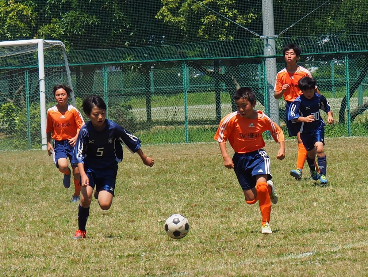 しかし後半開始後暫くして、最大のピンチが・・・たちばな左サイドの空いたスペースに相手のカウンターのボールが繋がり、DF陣が寄せたところ、相手FWが一歩右にかわしてシュート・・・ボールはゴールポストに当たり、相手の得点になりませんでしたが、失点してもおかしくない場面でした。その後も終始たちばなのペースで試合が運ばれ、前半は影を潜めていたイッシーのオーバーラップやダイチやエイトの連携で何度もチャンスを作っていましたが、なかなか点が入らず。ダイチのコーナーキックも、わずかにセッキーとのタイミングが合わず、スコアレスドローで試合終了となりました。終了後のミーティングでは、選手たちは勝てた試合だったとくやしさを口にしていましたが、点が入りそうで入らない試合は今後も経験するので、しっかりチャンスを決めきれるよう練習して行きましょう!
