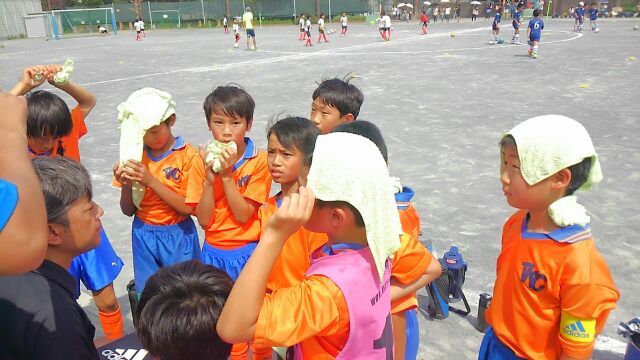 今日みたいにパス交換が出来るサッカーを続けていけたら、まだまだみんなは、成長すると確信しました。色々なプレーにチャレンジしてみましょう。みんないつも攻撃の時は、前に急いでしまいます。例えばバックパスをして、後ろにボールを下げて展開するのは怖いプレーかもしれません。奪われたら失点するからです。しかし、ボールをしっかり止めてからパスの一連の流れ(技術)がしっかり出来ていたら逆サイドに展開できます。そこからグループで崩すのも良し、個人技でドリブル突破もあり。色々な選択肢を持ち、相手の選手を悩ませましょう。相手の嫌がる攻撃、嫌がる動きを常に考えましょう。左サイドからの攻撃で相手DFに人数が揃っていたら、逆サイドに攻撃を変更するためにボールを動かしましょう。色々頭を使い、考えてプレーをいつも心がけましょう。今日は、コーチ陣誰も考えてプレーしましょうと、みんなに伝えていなかったので、考えてプレーできていたことが、多かったとおもいます。自信をもちましょう。良かったプレーは、次に生かしミスをしてうまくいかなかったプレーは、次の反省材料にしましょう。