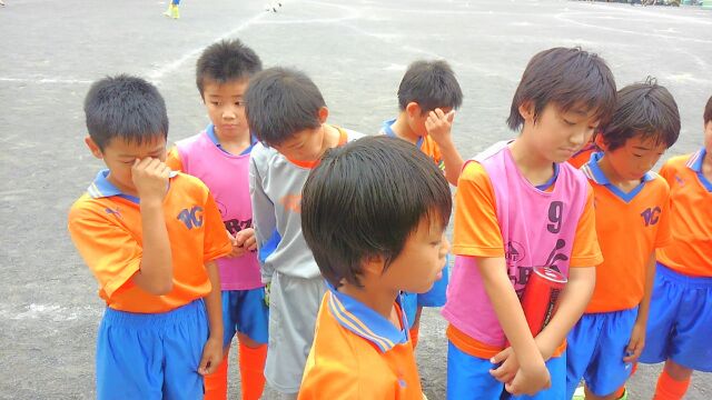 みんな落ち込んでベンチに引き上げてきた。泣いている選手がいる。一人だけじゃない。泣いている理由は、前半だけで4失点したのが悔しかったのか、自分のプレーがおもうようにいかないからなのか、チームとして機能していないからなのかそれぞれ思うところがあるとおもう。たぶん4失点の悔しさからの涙だとおもう。しかし、試合は終わっていない。サッカーは、前半で何点取られてもハーフタイムがあり、後半がある。酷なスポーツだ。野球と違いコールドゲームがない。4点取られても後半5点返せば勝てる。実力差は、おいといて。諦めたら終わりだ、泣きながらでも顔をあげて前を向いてプレーをしなくてはならない。当然、点を1点でも取りにいかないといけない。