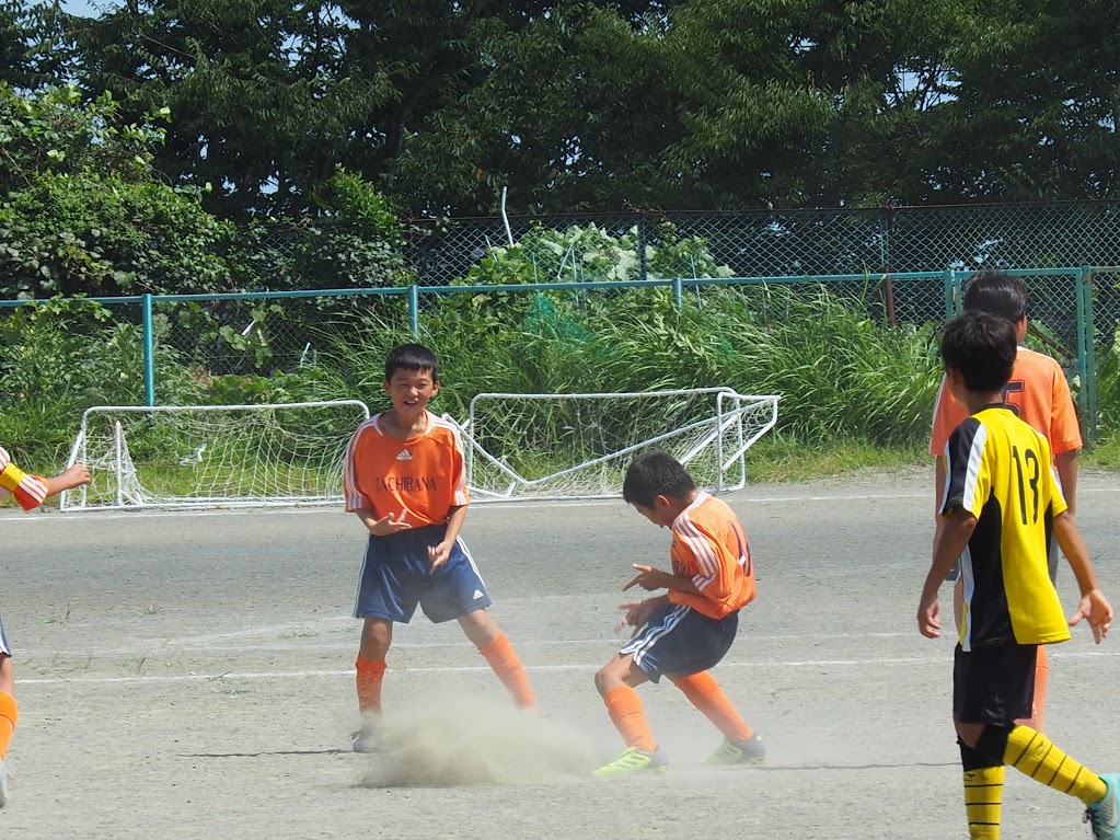 相手のキックオフで試合開始。序盤は拮抗した状況でしたが、徐序にたちばなペースになりました。 最初のチャンスは前半3分、ダブルタッチドリブルで相手を抜き、右サイドを上がったカズからのセンタリング。 相手ゴールキーパーに阻まれましたが、良い形が作れています! 更に前半4分ダイチの素早いプレスからボールを奪取するとセッキーのポストプレーからイッシーへの展開。 イッシーがそのまま持ち込みシュート!惜しくもボールはサイドネット。前の試合と同様に攻撃の形が作れています!! 右サイドバックのソウも、果敢にオーバーラップの動きを見せ、チャンスメイク。 コウシロウのカバーリング、エイトの逆サイドへのロングパスなど安定した動きを見せていました。 交代した選手たちも負けていない。レノンの足技からのボール展開、ワッチャン1対1の強さと豊富な運動量。トウマのオーバーラップからのドリブルシュート! ヨシマルの相手へのプレッシングや右サイドからのクロス。アオイの前線へのフィードボール。トモヤの丁寧なプレー、 マサウミの1対1の強さ。ユウダイの前を向く姿勢、それぞれの良さが現れた試合でした。