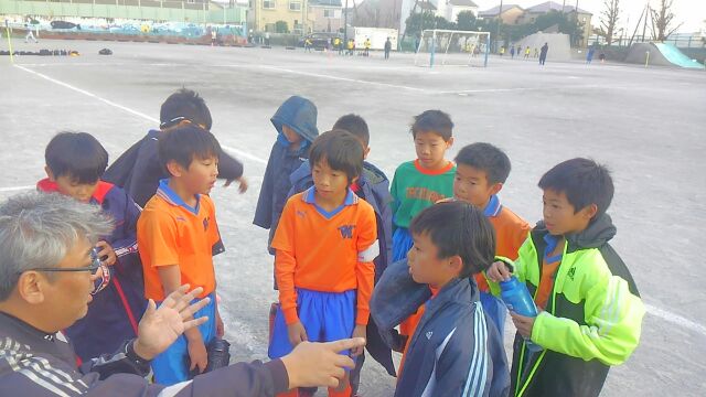 吉武コーチからアドバイス。しっかり落ち着いてパスをする。誰にパスを出すか声をかける。パスをもらう人も声を出す。声かけが少ない。