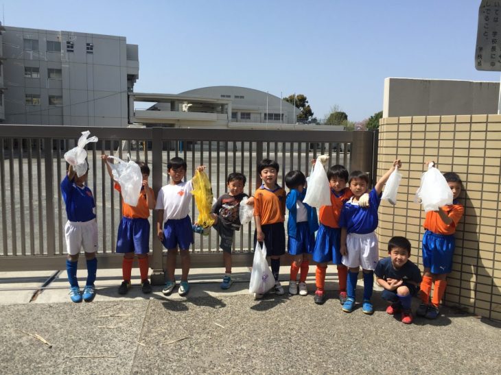 恒例の地域清掃活動を行いました。 新年度の初日、入団ホヤホヤの新一年生も一緒にゴミ拾い。地域の方がキレイにされているので争って探しました(笑)