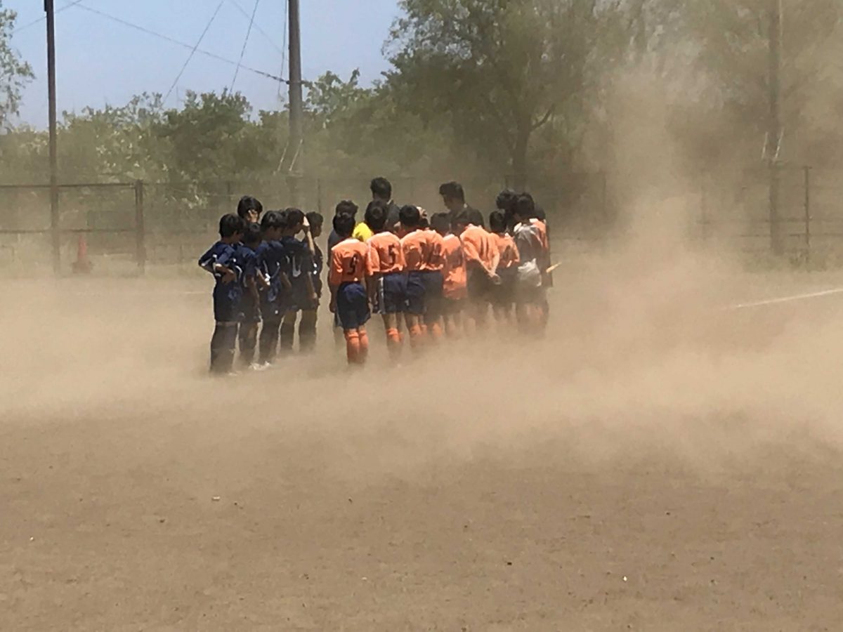 後半は、残念ながら、風下、しかも、時々、砂ぼこりでボールが見えない感じになるから、かなり苦労したかな。攻めは、クラモチが裏に抜ける動きを何度も仕掛けるも、中々、相手もやるじゃんって感じ、でも、その動きを続けることで、こぼれを、タカセキが拾って2次攻撃を仕掛けたり出来た、フォワードは、0.1%のチャンスをもらうために走り続けるんだから、これからもあの動きを続けてくれ。タカセキも右サイドで頑張ってたな、あーいう仕掛ける動きは大好きだ、やったるで、って感じで、相手もビビる、どんどんやろう! ニシは惜しいシュートあったねー、あのポジションにいたのは素晴らしいし、タイミングもばっちり、グッド。サガワは初めてのボランチ?これまた、最初、ポジショニングに戸惑いが見られたけど、これまた修正し、いいパスカットからの展開あり、成長、成長!ハシモトは、優しそうな顔してガッツあるんだよね、いいファイトしてた、いいねー、いいねー。ディフェンスが嫌いなタカハシも頑張ってたなー、ガツガツ行くの大好きだ。カネコは高いラインのディフェンスは素晴らしい! でも、上がりたい気持ち抑えてたのかな?いいよ、上がって(でも戻ってね) クロダも中々上がれなかったな、プレッシャー厳しく中々いつものフィードが出来なかったけど、バックのサイドの仕事してた、グッド。