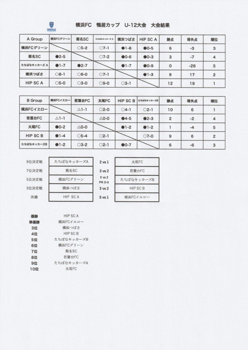 横浜FC 鴨居カップ たちばなキッカーズAの諸君、本日は、強豪相手にひるむことなく、真剣勝負をしてたのは素晴らしいし、チームとしても、フォローし合い、チームワークも最高だった(得点が入った時の全員での喜び、勝利の瞬間の全員での喜びは見てて感動もの)。真剣勝負はいくつになっても楽しい、今日は、本当に楽しめたんじゃないかな?