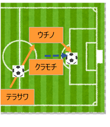 本日デビュー戦のウチノやるやんけ、テラサワからのパスを前に走りこんで受けてクラモチへパスした動きは美しすぎるぞ!!! イメージ↓