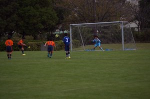 開始早々の前半1分、DFの裏を取られ失点。その後も攻め込まれるが、リョウゴウの好セーブで何とか抑える。14分、16分と空中戦が一枚上の菊名SCに失点、前半は0-3で終了。