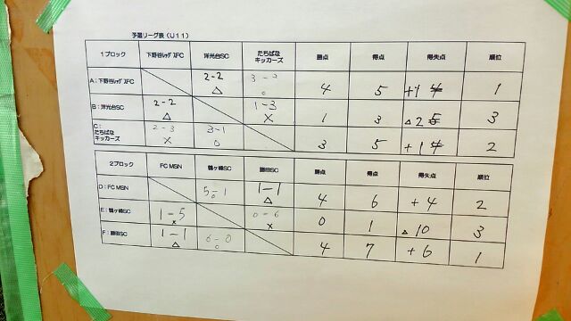 たちばなKCを含め、6チームが参加し、3チーム2ブロックに分け予選リーグを行い、その後、順位戦が行われました。