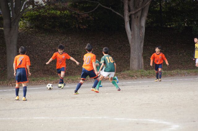 体の大きな選手が多く、テクニックもあるので、終始相手チームのペースでの試合となりました。当たりの強い相手チームの攻撃を何とか凌いでいましたが、たちばなDF陣の足が止まり始めた後半9分。バイタルエリアからゴール右にボールを回され失点。更に後半10分。左サイドからの縦パス1本でDF陣の裏を取られ追加点を許す展開となりました。