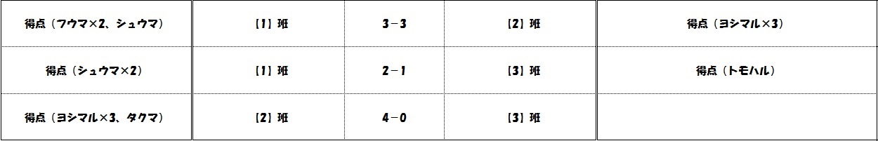 午後 1班~3班の対戦:7分ハーフ(ハーフタイム無し)