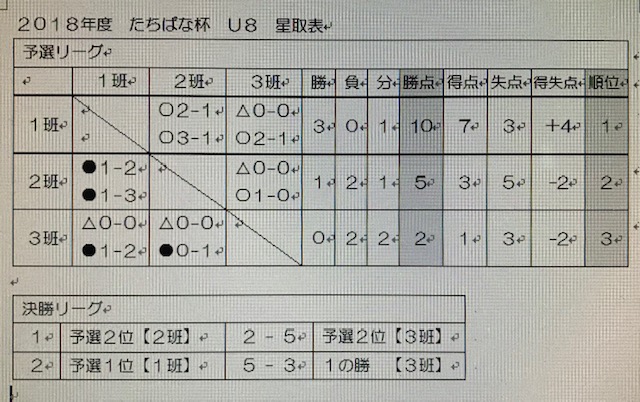 U8は3チーム編成。試合は予選を10分1本のダブルラウンドロビンで戦い、決勝戦は10分ハーフのステップラダー方式で。各チームから1名ずつMVPも選出されました。今回残念ながら、大会直前に骨折をして試合参加出来なかったタイチですが、前週までの練習には参加をし、当日も朝からみんなの応援をしてくれました。コメントは各チーム監督からです。