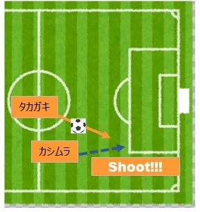 ファーストシュートはクラモチ、カワムラからのスルーに抜けだしてシュート!イメージ↓カワムラは、ピンチも救ってくれたし、チャンスも多く作ってくれた、Very Good!