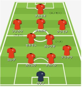攻めのパターンを中々作れないが、タカガキがボールを持つと何かが起きる予感が常にしたな!すげーキック力で、クラモチに展開するいいパターンが何度もあったな!イメージ↓