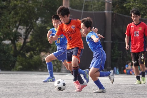 何本か大きなサイドチェンジがアサヒやカンタからあったものの、まだ少ないかな。吉田コーチから前の試合の反省点として、挙げられたしっかりトラップをして1度ボールを落ち着かせてパスを出すという事が意識して出来る場面もあったものの、蹴り合いになってしまう場面が多かった。