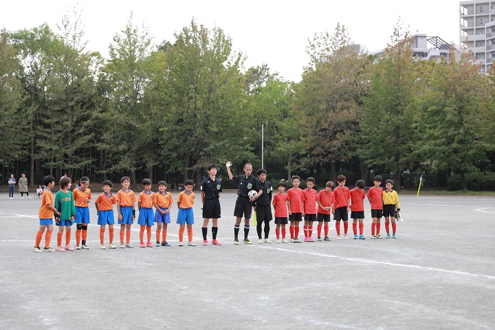 しかしアップが始まると5年生は「緊張する~」、4年生は「試合出るの怖い~」とビビり始めました。試合に勝つことも大事ですが、まずは「サッカーを楽しむこと」が大切。強い相手とサッカーをすることは、とても楽しいこと。高学年になれば気づきも生まれるでしょうしね。山田コーチから「緊張も楽しんで!」と声をかけられ、選手達はリラックスできた様子。