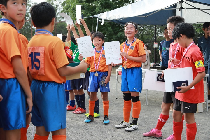 MVPはヒメカとカンタ。ヒメカは主にサイドハーフで出場。何度も縦突破を図って相手チームを翻弄しました。以前であれば倒されていた場面でも体幹が強くなり、むしろ押し返す強さが出ています。足元もとても確りしてきました。カンタはとにかくボールに絡むシーンが多い。これはカンタの走行量の多さに理由があります。中盤で必ずフォローに入る、取られたら相当しつこく取り返しに行くことが、とても良くできています。二人ともMVPに相応しい活躍をしてくれました。