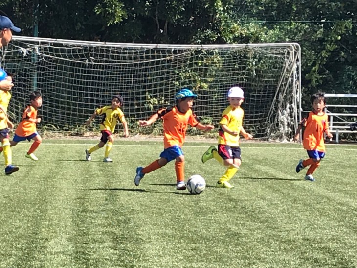 10月とは思えない残暑(なんと30℃!)の中、慶應サッカースクールさんとの交流試合に行ってきました。整備された人工芝とさわやかな大学生コーチに迎えられて子供たちのテンションも上がります。