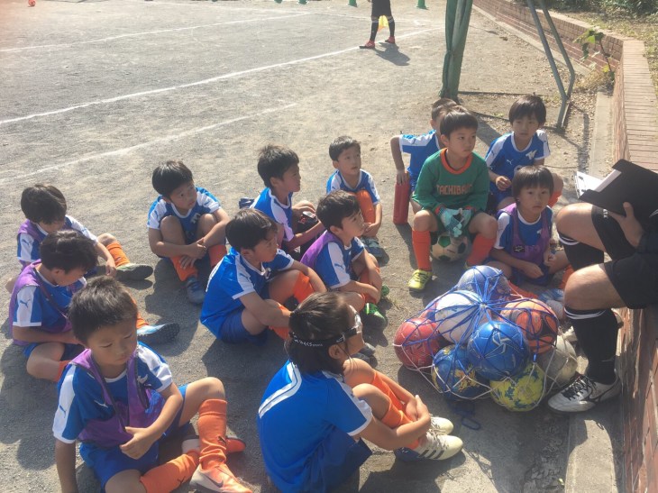 結果は0-5で完敗でしたが、随所に良いプレーが見れました。シンペイの高セーブや長いパントキックによるチャンスメイク、アヤカのフリースペースでの抜け出し(GKのジャンボへの反応がすばらしい)、ユウシの右サイドでのドリブル(奪われそうなところからさらにドリブルしてコーナーをゲット)、ダイチの切り返しドリブル(正面が混んでいたので空いた横スペースに進んだ判断はGOOD!)等々。目を見張ったのは、DFのオウスケとジュンイチロウ。前半はコーチからポジション修正の指示が飛んでましたが、後半は状況(特にフリーで駆け上がった相手選手)をよく見てバランスを取っていました。強い相手だと、フリーにさせるとすぐ失点につながるので、今後も中央が手薄にならないように、周りをよく見て動いてほしいです。