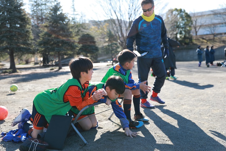 3本目の後半は今後たくさん控えているカップ戦を見据えて、少しチャレンジをしてみました。センターバックのリッキーとアサヒに「思いっきりラインを上げる作戦」を実行してもらいました。春からみんなサッカーがとても上手になったのですが、“中盤がスカスカ”になってしまう弱点が中々改善しておらず、思いきって超攻撃的サッカーにしてみました。リッキーやアサヒは裏を取られたくないので、相手がボールを持つとつい引いて守ってしまいますが、我慢してラインを上げるとセカンドボールが拾えるので、実は相手の攻撃の頻度が減ります。案の定、前半0-1で劣勢だったゲームが後半は一転攻勢に変わり、常時たちばなの流れに。動き方がいまいちよく分かってなかった右サイドバックのリョウゴウも攻撃的サッカーが楽しかったようでインターセプトにスルーパス連発の大活躍。トップで途中出場したユウトが1得点、そして狙い通り攻撃参加してくれたセンターバックのリッキーが1得点!!! カウンターで何度かピンチはありましたが、みんながダッシュで戻り、課題の攻守の切替の速さもクリア。全員のサッカーに様変わりしたのには驚きました。良いサッカーでした。