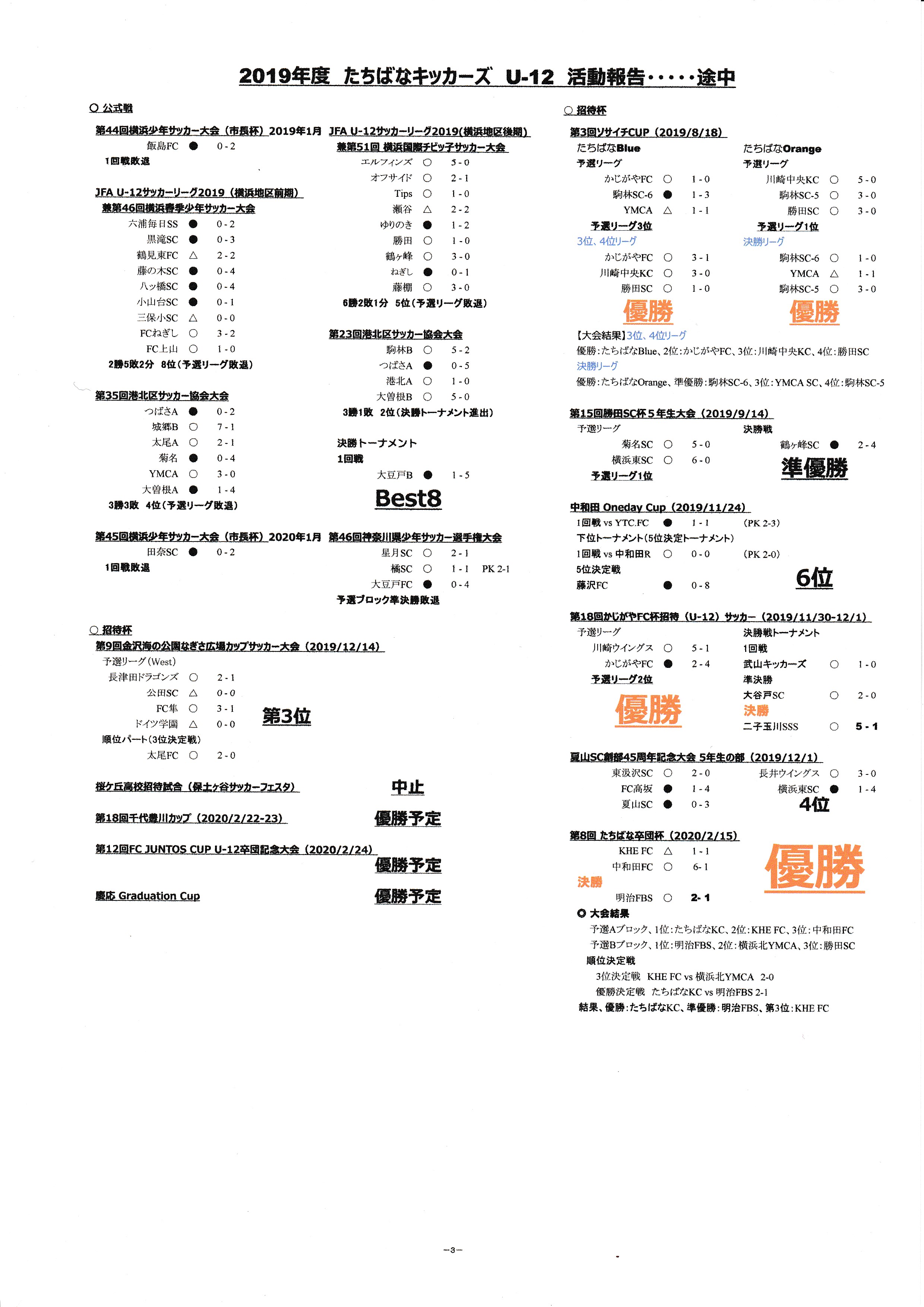 最後に、たちばなのU-12の全面の時間は、土曜日 16:00-、日曜日 8:30- だ。覚えておくように!