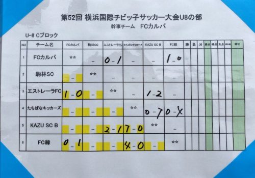 そんなこんなありつつ試合開始時間はやってくるので、ポジションの希望を聞いて、KAZU SC Bさんとの1試合目は、GK前半はリョーマ、後半カズ。DFはヒロトとレンに決定。