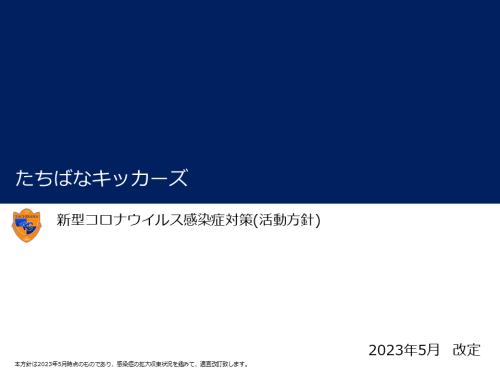 新型コロナウィルスの影響下、2021年7月から感染症防止対策を実施し、一部の活動を制限しながらチーム運営を再開致しました。自治体の感染症対策の緩和に合わせて活動方針の一部を改定したいと思います。