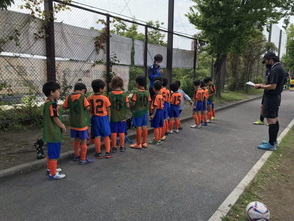 そして菊名SCさんとの試合は村田コーチに采配をお願い。次の試合の審判対応で途中抜けちゃったので最後まで試合観れませんでしたが、入ったばかりの子も多く、初めての公式戦でみんなよく頑張っていました。でもゴール前で何人かシュートを打っていたけど、目の前にいる味方にことごとく当たってゴール出来なかったのはもったいなかったかなー。来週は味方DFに合わないように、気を付けましょう。