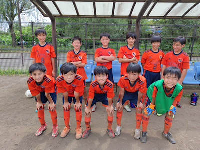 区大会も終わり、春の大会は一通り終了したので、いつもと違うフォーメーションを試そうということで4-2-1システムにてスタート。ポゼッションを高めて、マイボールは大事にしようということと、切り替えの速さを要求して試合に臨んだ。序盤こそサイドバックのポジショニングに迷いが見られたが、徐々に幅を大きくとれるようになり、コウタが左サイドをオーバーラップしてチャンスを演出するなど、いい場面もつくれた。一方でGKを使って低い位置からもっとボールを回しながら前進することはうまくできなかった。GKがボールを持っているときのセンターバックのポジショニングや、中盤の受ける姿勢など整理できていない模様。試合は11分にオーバーラップしたリンタから中でフリーになったショウキに落ち着いてパスが入ると左足で鮮やかなボレーシュートが炸裂。その直後もGKのキックをソウスケがカットしたこぼれ球をタイガが右足でズドンと決めて2-0で勝利することができた。
