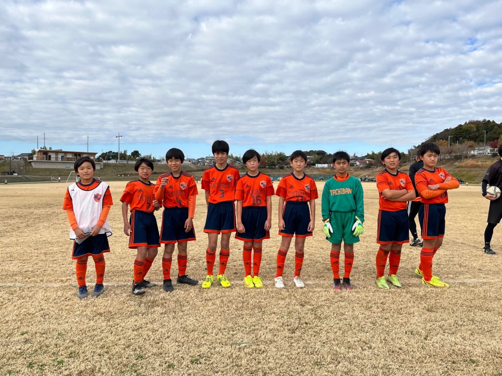前線のプレスのかけ方と攻撃時の連携面を確認し、気合を入れてたちばなボールで後半スタート。前日のなぎさカップ決勝戦を観戦いただいた宍戸代表からキックオフのやり方に関してきつーいお言葉を頂いた効果が早速現れました。後ろに下げると見せかけて、裏に走るミツキにショウキから絶妙なロングパスが供給され、敵陣深くにいい形で侵入することができた。さすが有難いお言葉、選手に響いて早速話し合ってくれたようだ。その流れからケイタが高い位置でボールカット、そこからタイガに一旦預けて、もらった落としを裏に抜けるショウキにスルーパス。ショウキは相手から遠い位置に絶妙のトラップをしてそのまま逆サイドに矢のようなシュートを突き刺した。3人が連動した素晴らしいゴール!!このゴールはタイガのポストプレーの意識の高さが産んだゴールだ。