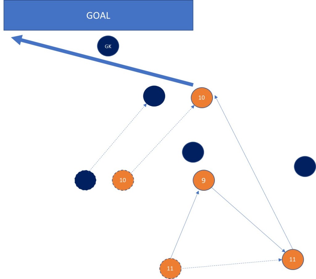 前線から連動してプレスを掛けられた場合は高い位置でボールを奪え、チャンスにつなげることができていた。タイガとケイタがボールホルダーにプレスを掛けにいく形は相手の脅威になっている。それから1点目にみられたように、タイガのポストプレーから効果的にチャンスメークができるようになった。ケイタ、ショウキが簡単にタイガに預けてもう一度受けなおす形がもっと見られればもっと得点が量産できるぞ。トライアングルがうまく形成できるよう意識して連動していこう。この試合で見られた課題はビルドアップの部分。相手が効果的にプレスをかけてきてはいたが、もう少し相手の間に顔を出す動き、スペースを作る動き、立ち位置を改善する必要がある。今日は芝生のピッチでボールスピードが出なかったけど、普段から速く正確なパスを心がけていればなんてことはないよね。相手にボールを奪われず効果的に前進できるよう課題意識をもって取り組んでいこう。