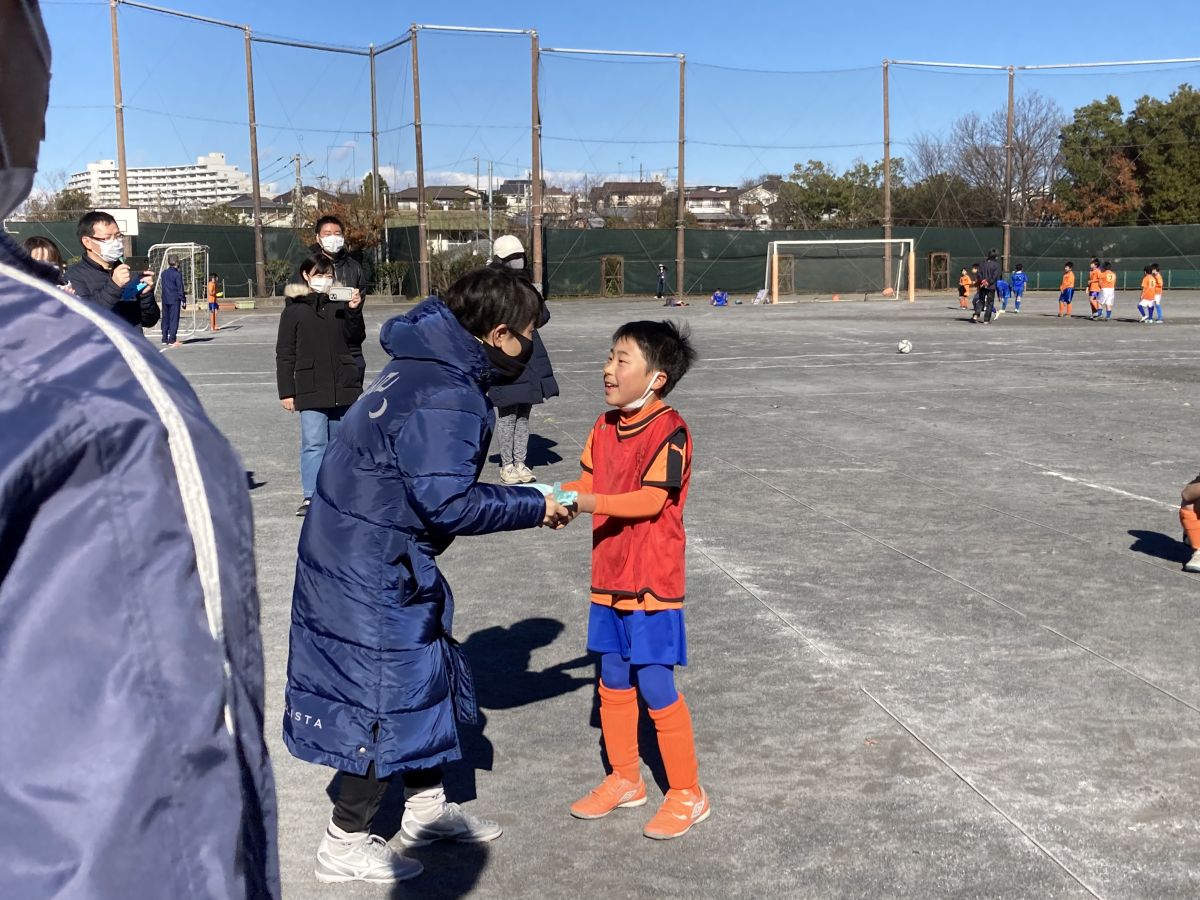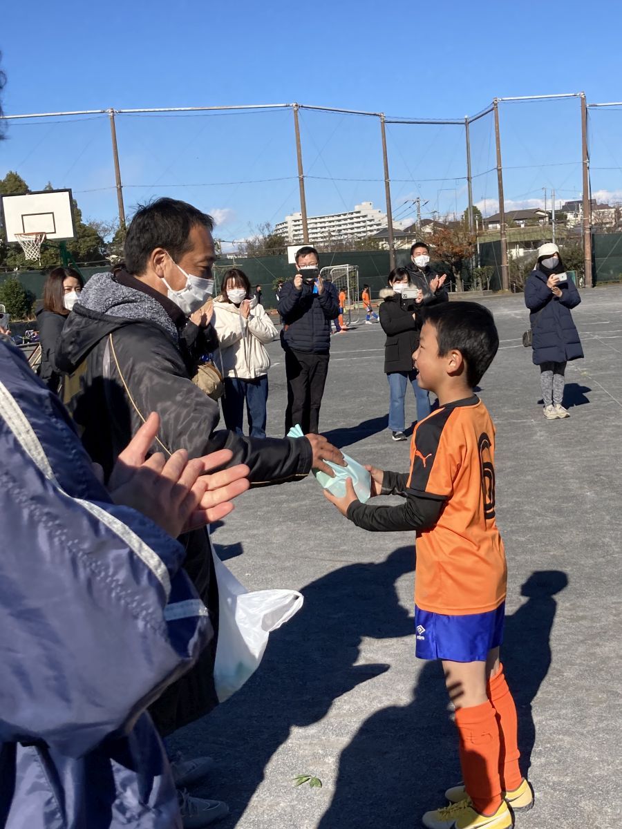 最後はみんな笑顔で終われました。寒い中足を運んでくださった保護者の皆さん、ありがとうございました。いつも以上に子供達もはりきってボールに向かっていたと思います。いつまでも良きサポーターとして応援してください。(コーチゆかり)