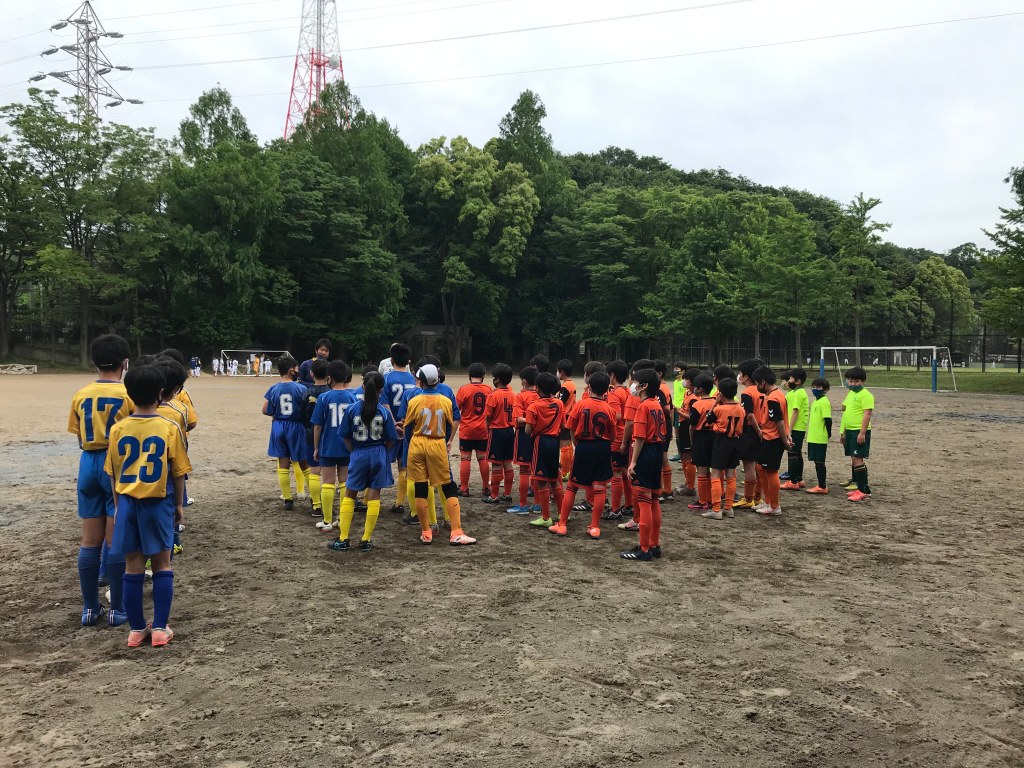 梅雨入り前の長浜公園 天然芝グランドにて、港北区U11交流リーグAブロックの初戦が行われました。緑に囲まれ、青々とした芝生に、そよ風が吹いて何とも気持ちが良い感じ。グランドの気温が上がる前の第一試合で、城郷SCさんと対戦しました。