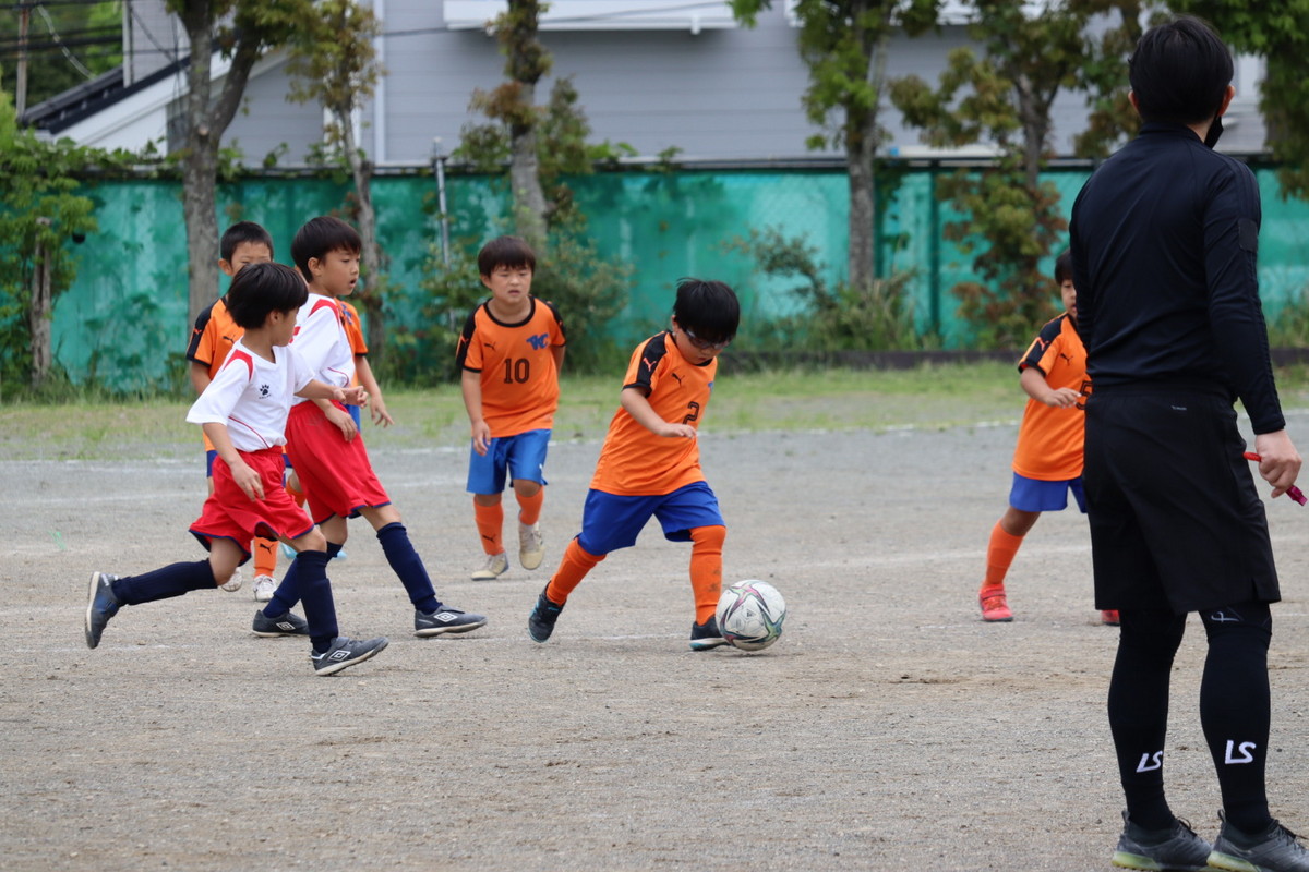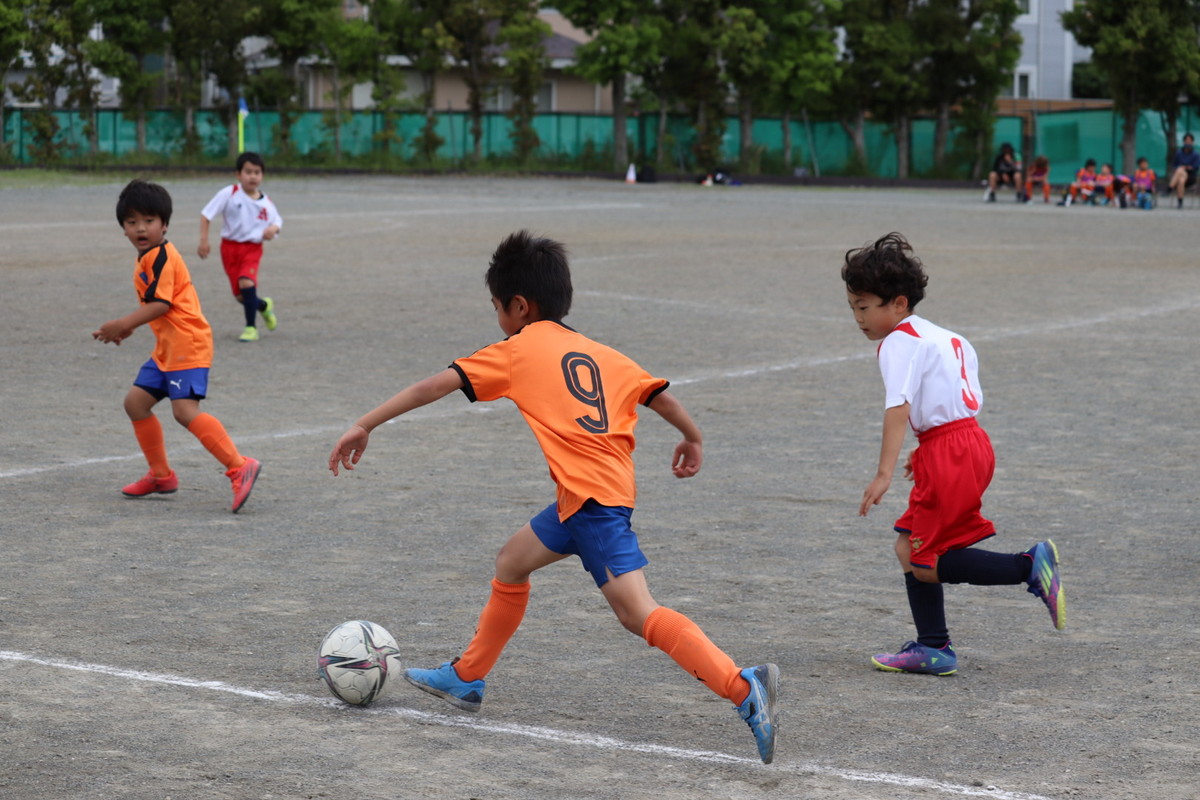 2試合連続の完封ですが、相手に決定的なシュートを打たせず、全員が非常に集中した守備ができました。攻撃はほんとうにあと一歩、あと一息のところです。ドリブルが前へ前へになるところを横に動かして、人のいないところに運んで、たくさんシュート、ゴールをできるようになりましょう。コウタが右サイド後方でボールを持った時、前に相手選手2~3人がいるのを見て、逆サイドにフリーの味方選手にパスを出すといったすばらしいシーンもありました。こういうプレーをもっともっと増やしていきたいです。最近、重点的に練習しているワンバントラップも積極的にチャレンジできています。