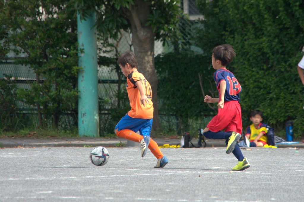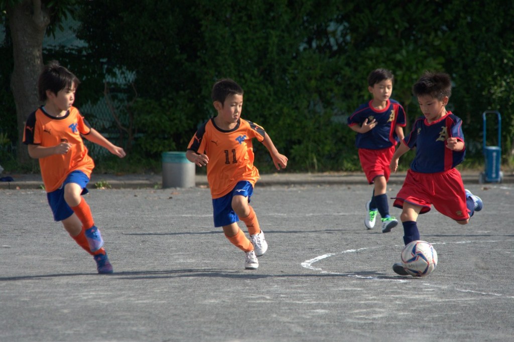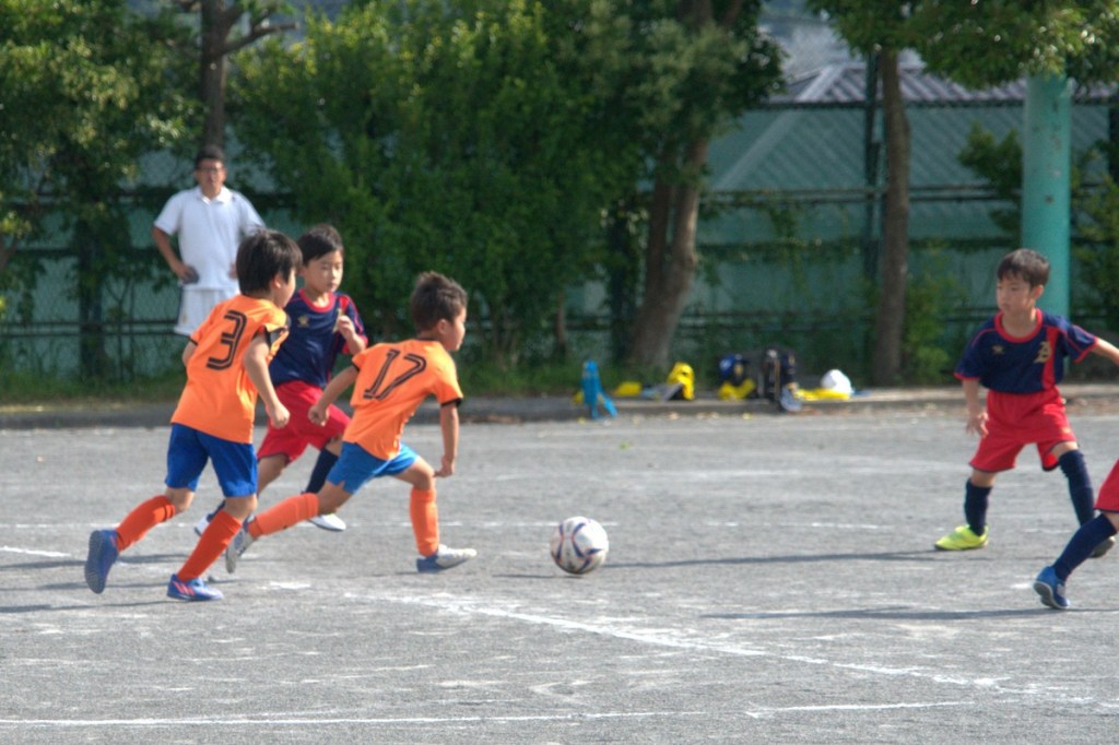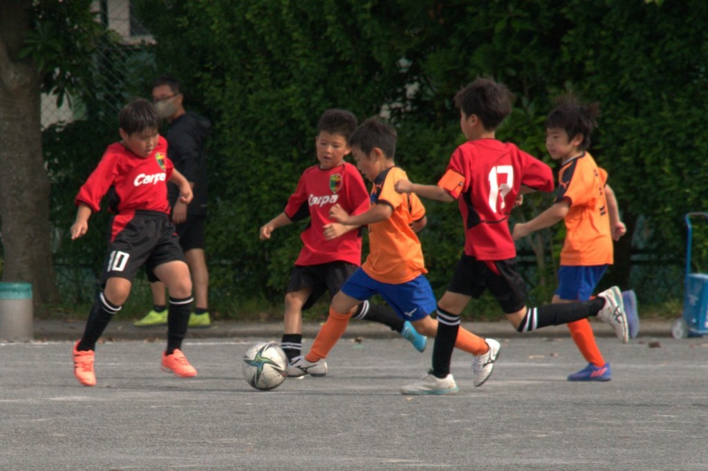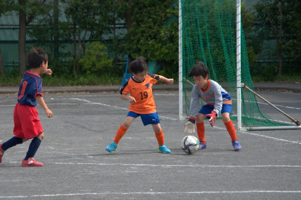その後は、サイドでボールを受けたコウタが前に相手がいるので無理せず後ろに控えるユウトに戻して、ユウトがもう1度コウタにパスして攻撃につなげる、GKアヤトは果敢に前に出て相手選手にシュートをさせないといったハーフタイムでのアドバイスを実践した全員守備で、なんと後半は0失点完封でした。後半だけを見れば1-0です。後半はみんな積極的にボールに絡もうと先にボールに触ることにチャレンジできていました。この後もこの意識をもっていければ、初勝利は遠くないぞ。