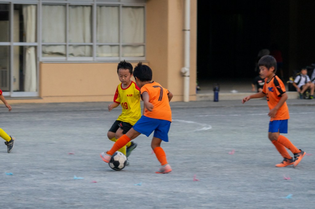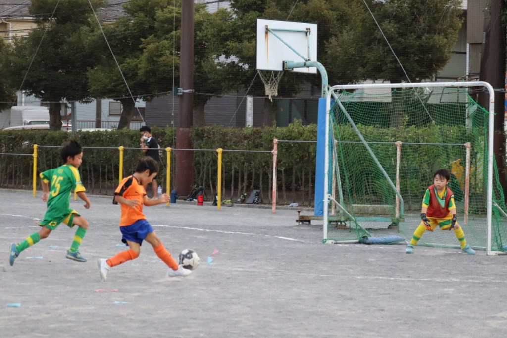 1点失点したあと、火が付いたのかタイセイ、ミユを中心にドリブルで相手ゴールに迫る展開。相手DFの前で左右にボールを動かしてシュートを伺うミユのドリブル素晴らしい。マルセイユルーレットのようにボールを引いて相手をかわしていくタイセイもグッド。何度か惜しいシュートがゴール脇に外れた後、ドリブルでタイセイが抜けだしてGKをよく見てシュートを決めて同点!