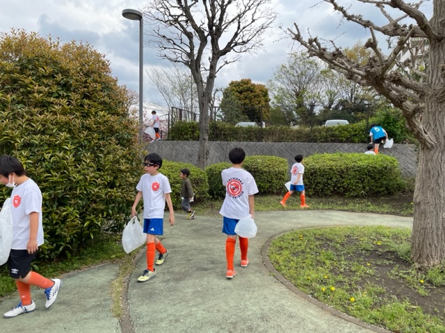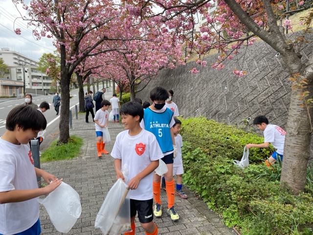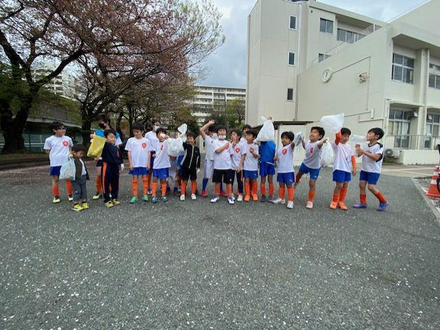 4月2日の練習終了後に、地域貢献活動の一環として、4丁目公園(U8)、 緑道(U10)、 桜並木周辺(U12)の清掃を行いました。みんな、たくさんのごみを見つけてくれたので、下田小学校周辺がきれいになりました!!!