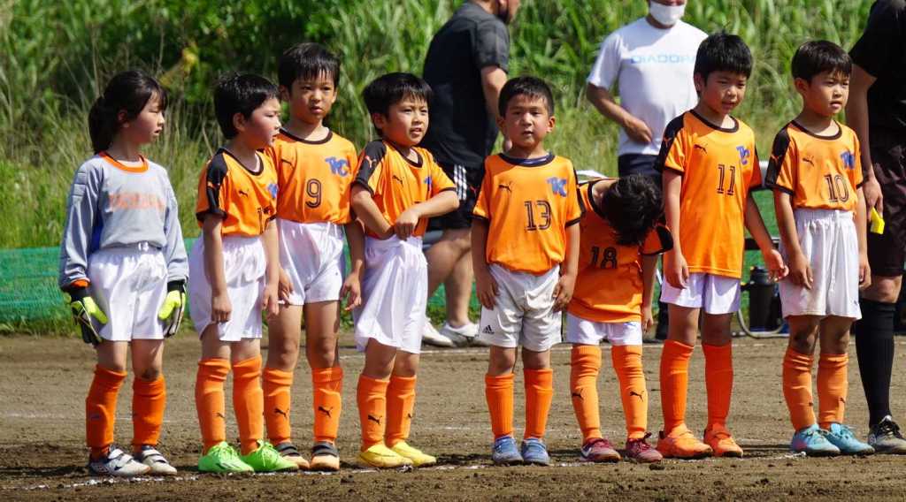 前日の雨の影響でグランドがぬかるんでいて、試合前の練習中でも転ぶ・滑る子供たちが続出。顔に泥がついている子までいましたが、子供たちは楽しそう。