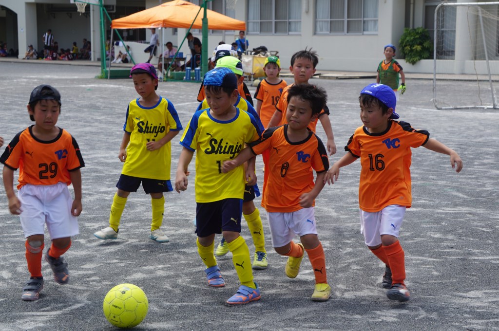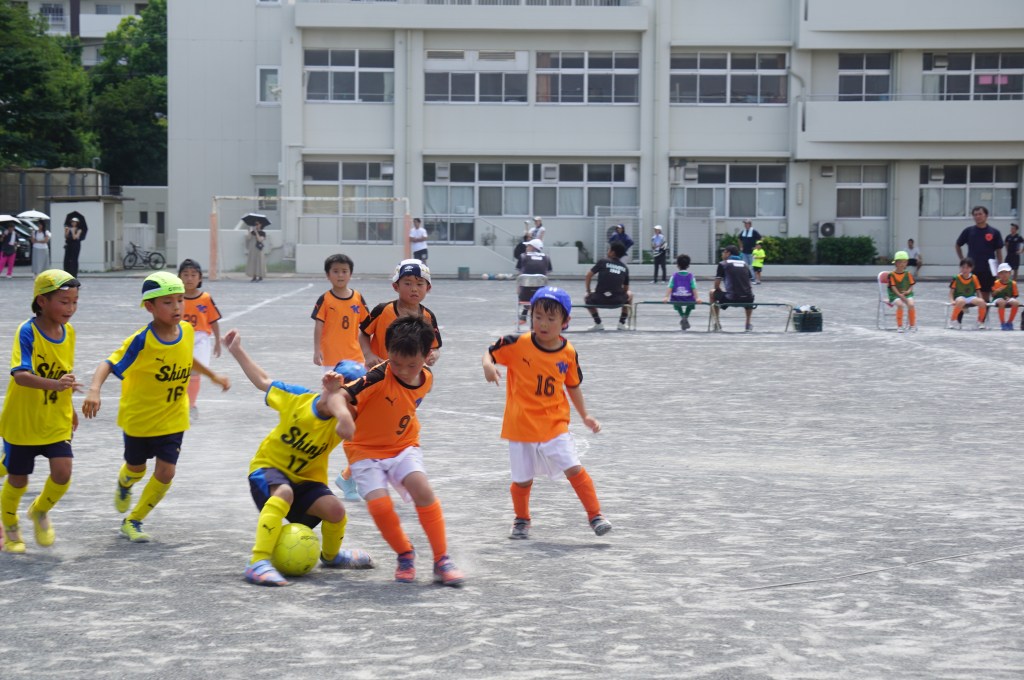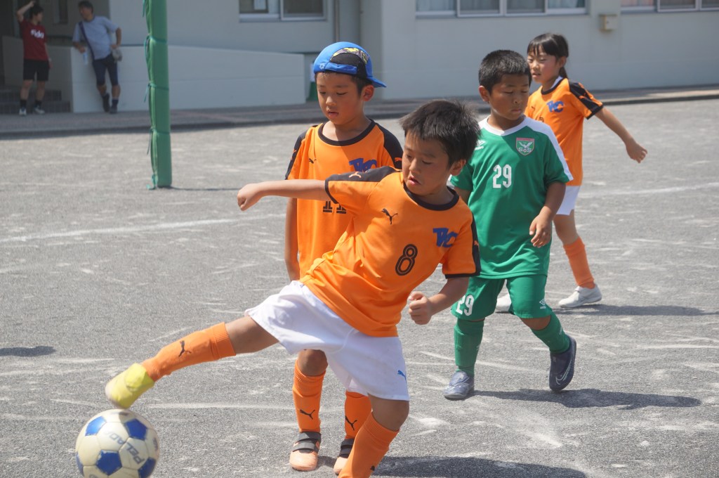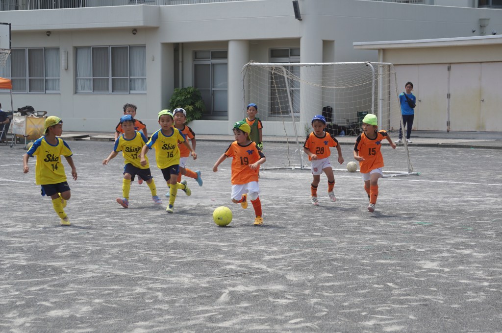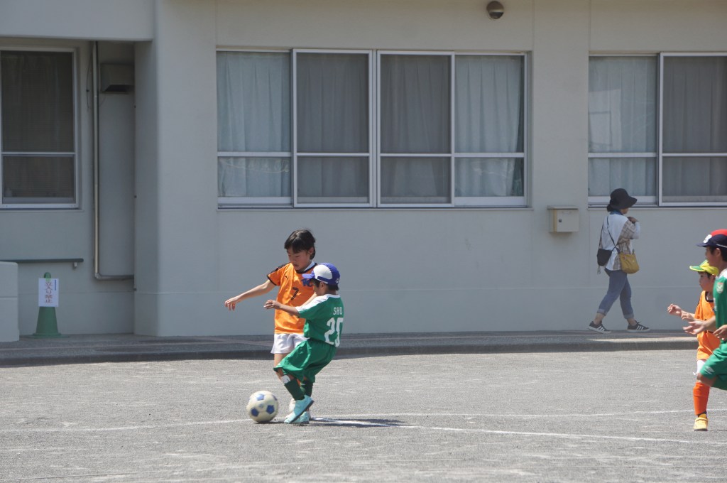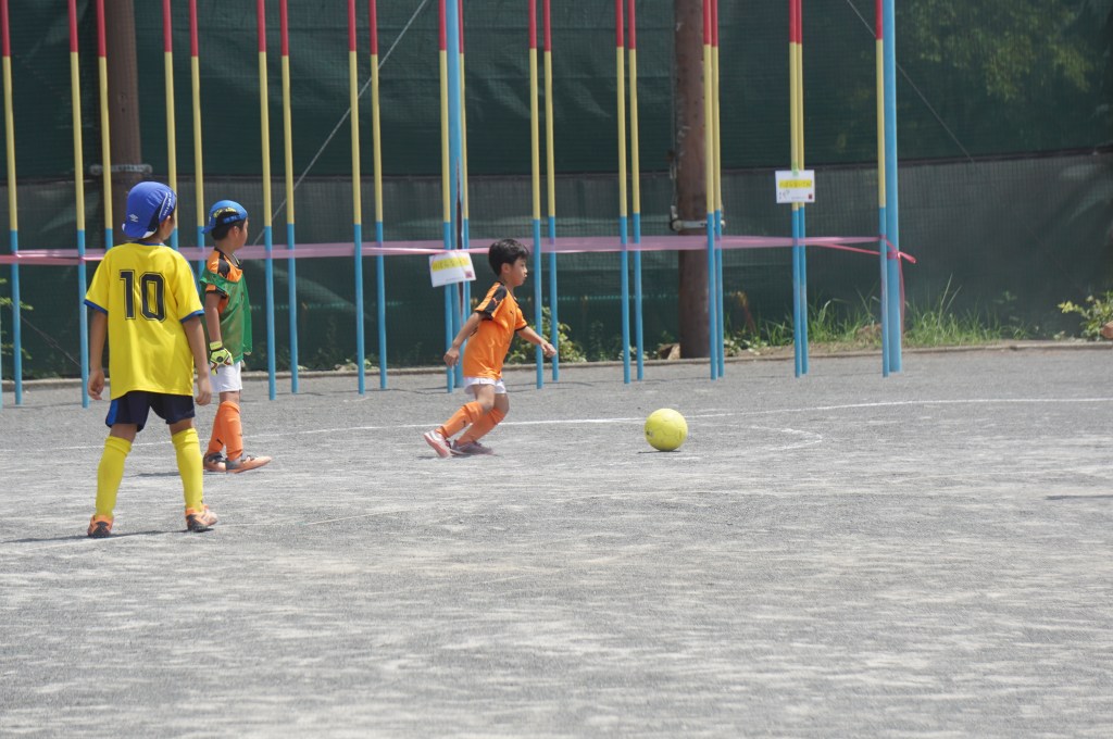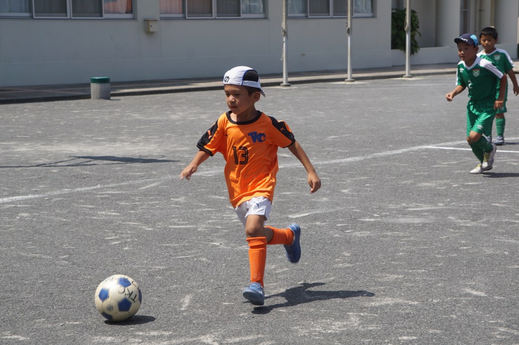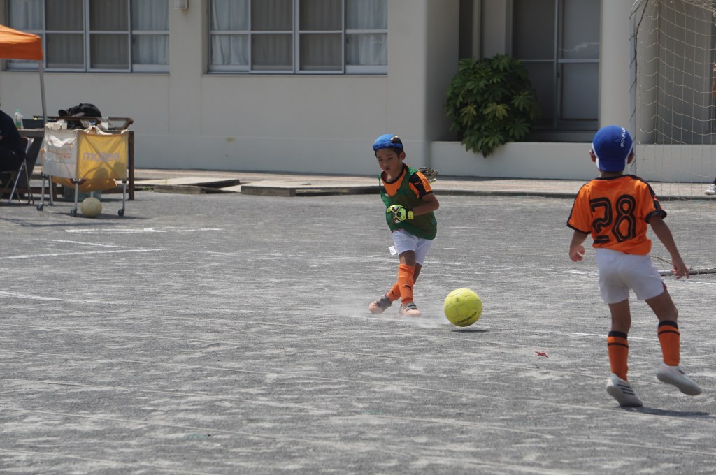 試合前にアップを始めるも、少し経つとみんな「喉渇いたー、日陰に行きたいー」と。このところの日差しは本当に暑い。まー今日はお祭りだし、午後まで長いから、ゆっくり無理せず行こう、と思ったのが良くなかったか。勝田さん相手に、立ち上がりは2年生を中心に守備をお願いして、1年生のショウちゃんとトモキに点を取りに行ってこいと送り出したものの、得点を匂わせる展開もあったので「いける⁈」と思ったのも次のま、前半中盤に失点してから崩れてしまいました。ゲーム前にもー少しちゃんと気合いを入れてあげれば良かったなーと反省。次に期待。(担当:ゆかり)