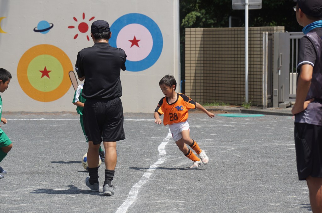午前中に課題だった攻守の速い切り替えができていたことや、ベンチのメンバーもしっかりと試合に集中していたのが収穫でした。特にベンチに戻ってきたばかりのタケロウやユウマが「また出たい、走れる」と強くアピールしてきて、とても頼もしく感じました。レンやソウの園児組も暑いなかよく走りました!(担当:福富)