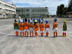 また、春の市大会、区大会からの課題であったゴールキック、スローイングのリタートを早くすることは徐々にできるようになってきています。ただ、ゴールキックでは蹴ったボールを相手に先に取られてしまいピンチになるシーンが多かったので、相手に先に取られないために近くに味方を呼ぶ、誰もいない空いたスペースに蹴るなど工夫をしてみましょう。あとは、特に2年生はキックの練習をたくさんして、遠くに蹴れるようになりましょう。