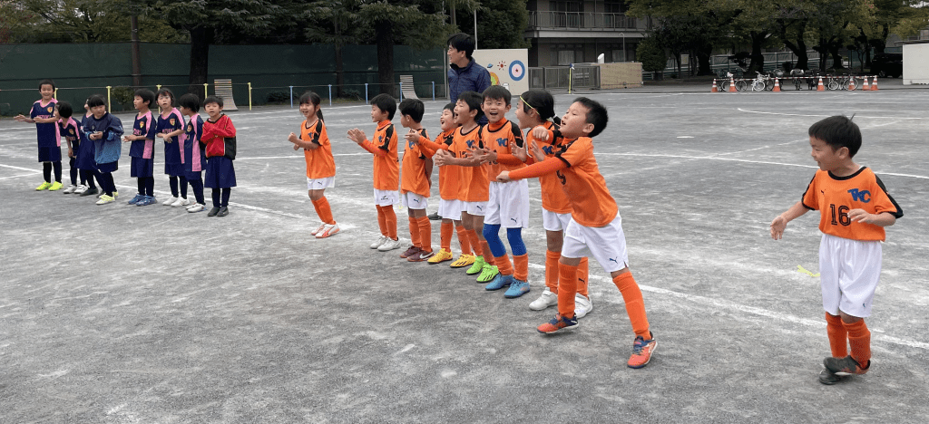 今日はご近所の慶應下田グラウンドで活動している慶應SSさんにお招きいただきまして交流試合をさせていただきました。いつもは下田小学校の土・砂のグラウンドですが、人工芝のきれいなピッチで、秋晴れもあって気持ちいいのか寝転んでいる子供もいましたが😅、子供たちがどんなプレーを見せてくれるのか楽しみです。
