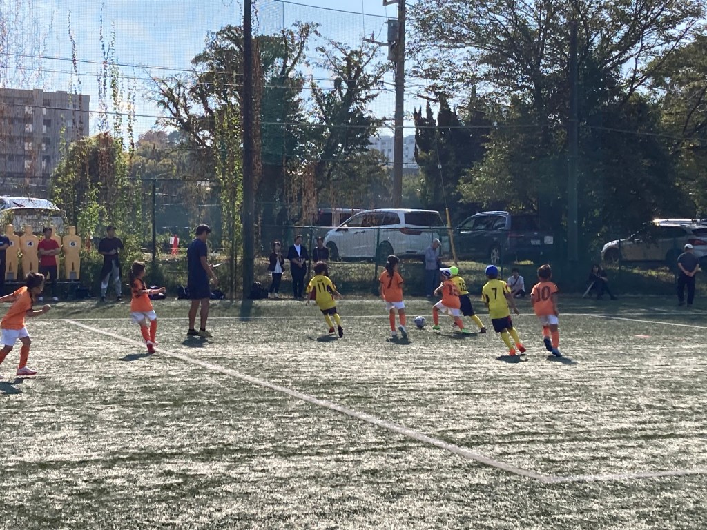 人工芝で転んでも痛くなく思い切ってプレーできるためか、子供たちはいつもよりも果敢にボールを絡んでいき、慶應SSさんの選手に自由にプレーをさせていませんでした。園児・1年生・2年生ともにボールを持ったらドリブルということはできるようになって、ゴールまで迫るシーンがいくつも見られました。みんな最後のシュートを強く打てないことが多いので、強いキックができるように普段の練習頑張りましょう。秋の港北区大会ももうすぐ始まりますしね。
