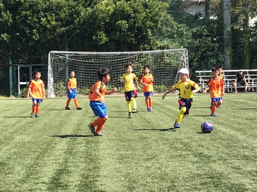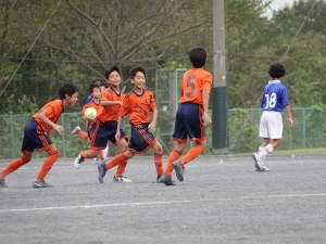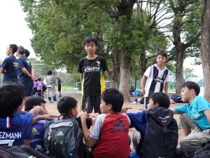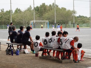 結果は0-5で完敗でしたが、随所に良いプレーが見れました。シンペイの高セーブや長いパントキックによるチャンスメイク、アヤカのフリースペースでの抜け出し(GKのジャンボへの反応がすばらしい)、ユウシの右サイドでのドリブル(奪われそうなところからさらにドリブルしてコーナーをゲット)、ダイチの切り返しドリブル(正面が混んでいたので空いた横スペースに進んだ判断はGOOD!)等々。目を見張ったのは、DFのオウスケとジュンイチロウ。前半はコーチからポジション修正の指示が飛んでましたが、後半は状況(特にフリーで駆け上がった相手選手)をよく見てバランスを取っていました。強い相手だと、フリーにさせるとすぐ失点につながるので、今後も中央が手薄にならないように、周りをよく見て動いてほしいです。